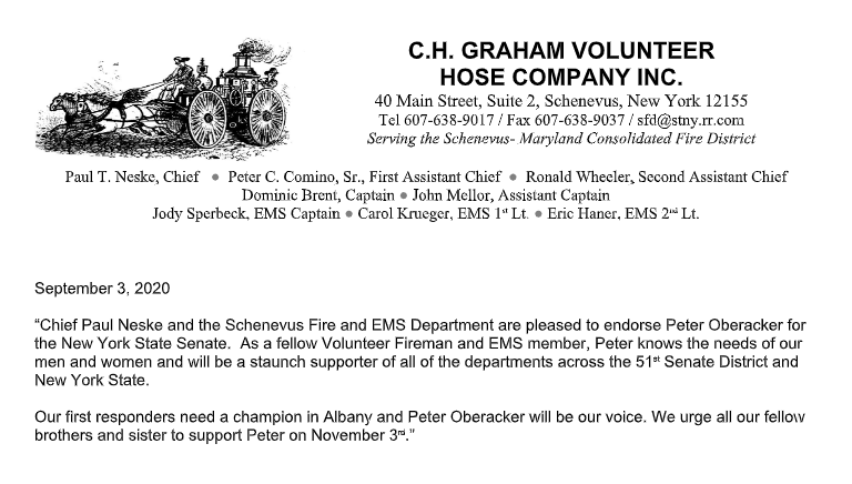 Schenevus Fire and EMS Department Endorse Peter Oberacker for NYS Senate Sep 5 Written By Peter For Senate Peter For Senate